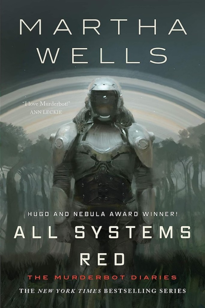 All Systems Red: The Murderbot Diaries is book one of six in Martha Well’s Murderbot series. Let me begin by saying that I can’t remember the last time I literally laughed out loud reading a book of any kind! Judging by the cover and title alone, I expected, well, a robot that has gone gained a consciousness, gone rogue and is out loose in the universe wrecking havoc and gaining revenge on its creator/captors. What I got instead was a robot who has gained consciousness, hacked its own system so as not be controlled by the company, rented out as a security robot to protect groups of scientists while they gather resources on remote planets all the while trying to prevent the fact that it has gained a sense of self-awareness by limiting as much human social interaction as possible and spending the majority of its time binge watching media shows on the web. Wait, what?! That’s right folks, we have our first ever murdering expert antisocial robot!