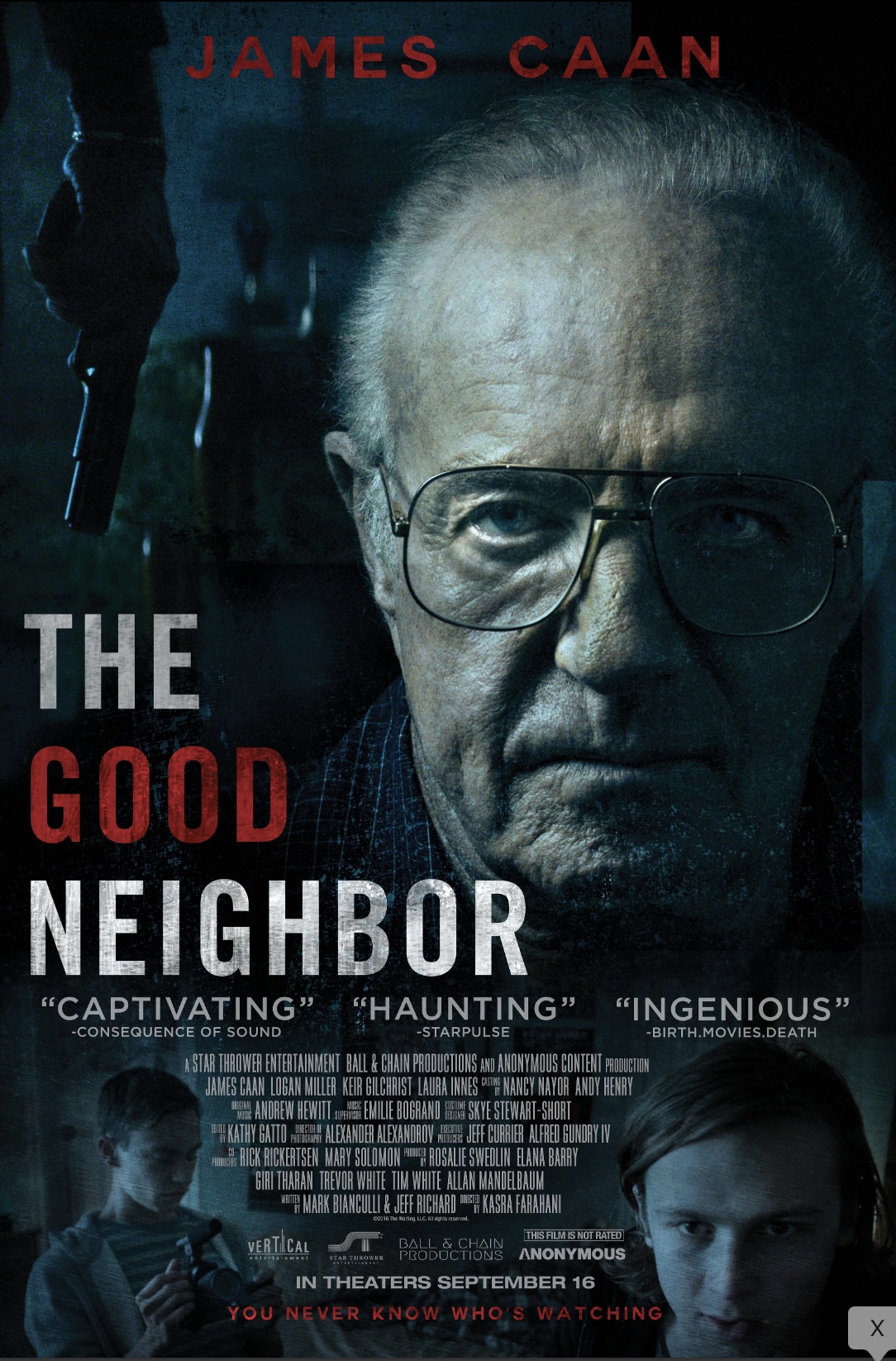 The Good Neighbor is not a true found footage film, however. Sub-par but passable acting all around, which is what I expected, nothing more. There’s always that one reserved person along with that one douche or asshole to keep things interesting and moving along. Here, Sean and Ethan did their thing, respectively. The ending was more or less fitting for the film. Both getting away with just probation and community services did seem like an injustice, though. The ending scene likely meant that both teenagers got something different out of the horrible experiment gone wrong. It would seem like Sean will likely never hang out with Ethan again. He’ll likely have a lot of reflecting to do regarding his part and role in the experiment. Ethan, on the other hand, the ending scene would have us believe that he will be able to use this failed experiment and now with tons of public exposure, to finally be able to maybe get the million or so views he so desperately craves online. Maybe he’ll start another similar experiment down the road?